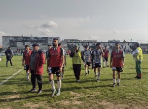 Previo al inicio del cotejo entre el Deportivo Laferrere y la UAI Urquiza se desató un enfrentamiento entre distintas