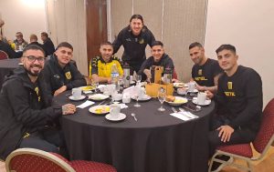 El plantel de Almirante Brown desayunó hace instantes en el hotel en donde se están alojando en la provincia