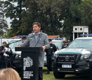 El mandatario bonaerense Axel Kicillof hizo entrega de patrulleros para el partido matancero, en el polideportivo Alberto Balestrini, junto