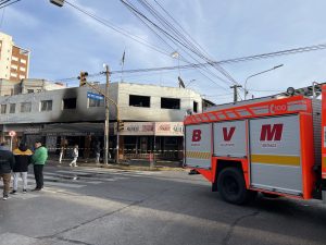 El histórico bar de la localidad cabecera ubicado sobre la avenida Perón e Yrigoyen, se incendió en las primeras