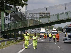 La colisión generó el derrumbe parcial de un puente peatonal y la zona presentó demoras. No se registraron heridos.