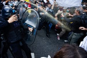 Miembros de la Policía Federal le lanzaron gas pimienta a los manifestantes que se sumaron para solicitar mejoras en