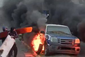 Un grupo de repartidores protestaba por el crimen de uno de sus colegas el domingo a la noche, asesinado