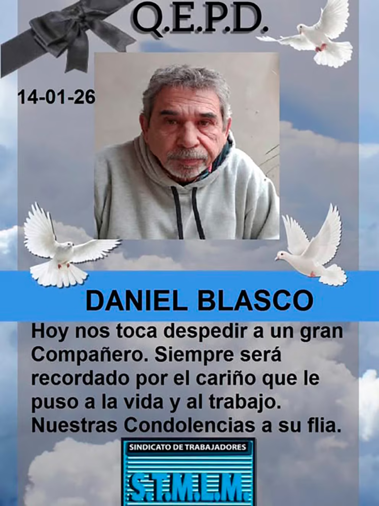 Tras el fallecimiento y como es costumbre en el gremio, el Sindicato de Trabajadores Municipales de La Matanza despidió públicamente a Blasco a través de un mensaje en redes sociales.