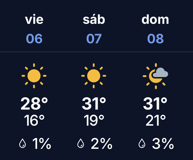 El domingo repetirá el patrón sinóptico del día anterior, por lo que se podrá esperar otra jornada térmicamente tranquila. El amanecer promete cielo ligeramente nublado, viento moderado desde el norte y mínima de 21ºC.