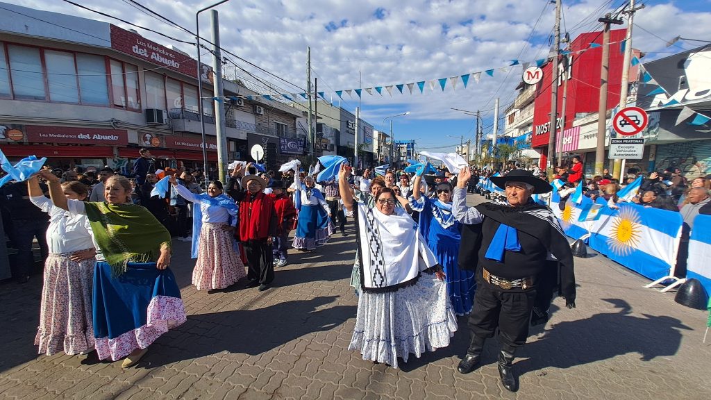Sobre la peatonal de la mencionada localidad, el intendente Fernando Espinoza encabezó el acto por el Día de la Independencia, en el que celebró junto a vecinos y vecinas, estudiantes, excombatientes y militantes de la jornada, y en la que además criticó al Gobierno de Javier Milei y sus medidas.
