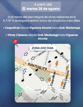 En el marco de las obras que se están llevando a cabo en la Ruta Provincial N°4, en la localidad de San Justo, desde el Gobierno local informaron que a partir de hoy “se asignará sentido único de circulación” a dos calles de la zona.