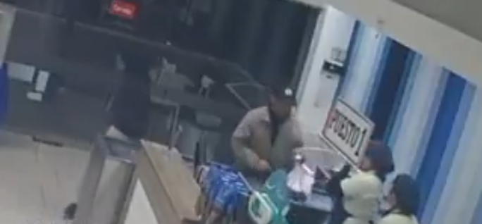 Unos segundos después, el ladrón volvió a acercarse al costado del mostrador y sacó un revólver. Para que nadie se diera cuenta, tapó el arma con su propio torso y la utilizó para amenazar a las trabajadoras.